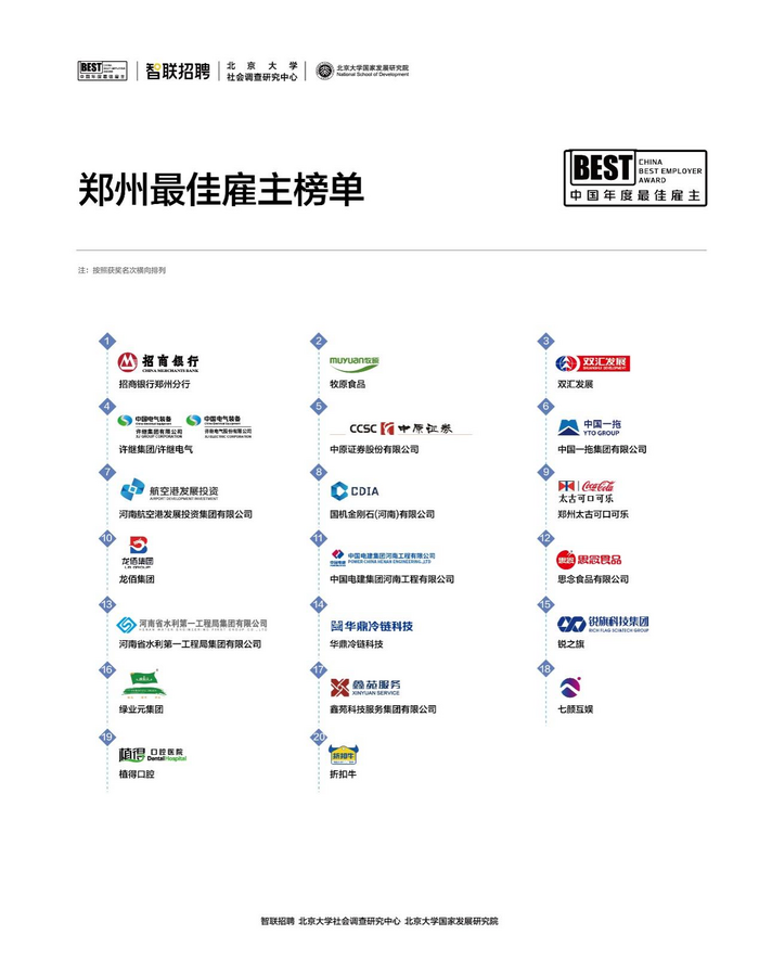 近日,智联招聘联合北京大学社会调查研究中心共同发布“中国年度最佳雇主”榜单。公司凭借完善的人才发展机制与深厚的企业文化底蕴,成功获评“2025年度郑州最佳雇主”称号。这一荣誉不仅是对公司人才工作成果的高度认可,更是全体员工认同感与凝聚力的集中体现。